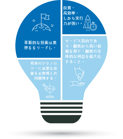 今後の見通し 会社の中心競争力と会社の中心価値に基づいて、継続的に成長する。 人間社会と自然の未来をより良くする。 世界で最も先進的で最も競争力のあるテスト統合テクノロジー‧システム‧サービス業者になり、お客様と産業チェーンで強力な競争力のあるチームを形成すること。 このビジョンを実現するには、次の能力が必要: